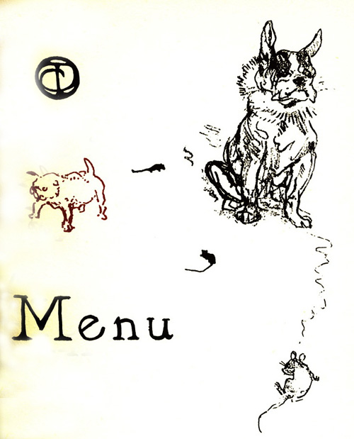 When he wasn’t out drinking port or vermouth (or champagne when he was in the money) and dining on Welsh Rabbit at Café Weber’s, or cocktails at the Irish American Bar when the Weber was too crowded, he was having friends in constantly for food and drinks, emptying his pockets and the hampers of prime produce and game his mother sent him regularly from his ancestral home -- Chateau du Bosc in Albi on the River Tarn. He required that his tables were only to be decorated with flowers and his artful menus (although from all descriptions, his studio was crammed to the rafters with decorations from a Japanese Warrior helmet to an African spear, to make up for whatever visual calm might preside at the table). His ‘violent sauces’ demanded a simple environment to shine, albeit a luxurious one -- his table linens and silver came from the family closets and were of the finest quality even if many of his glasses were pinched from cafes that he frequented.